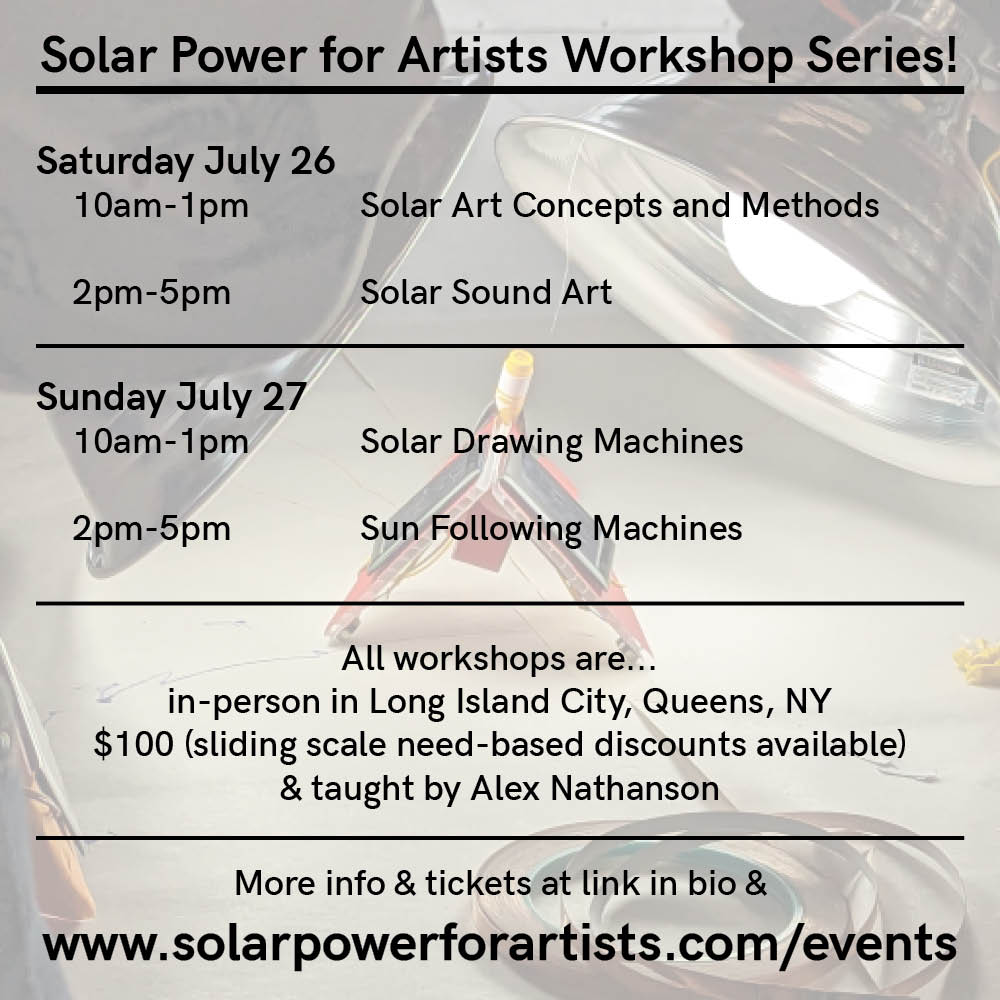 I’m teaching a bunch of solar power workshops IRL in NYC this summer. More info and tickets can be found here.